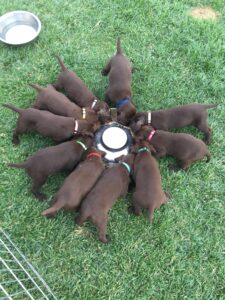 Piper whelped 9 beautiful pups! Piper and her pups are doing great! She had two “bonus pups” which means I have 2 male puppies available. Contact me for more information! These pups will develop into great upland bird dogs and companions!